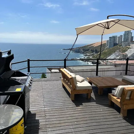 빌라는 Reñaca 지역에 있으며 엘 엔칸토 비치에서 5분 이내에 있습니다. Linda Casa Con Terraza Y Vista Al Mar 빌라은 욕조, 욕조, 샤워를 제공하는 3개의 욕실로 구성되어 있습니다.